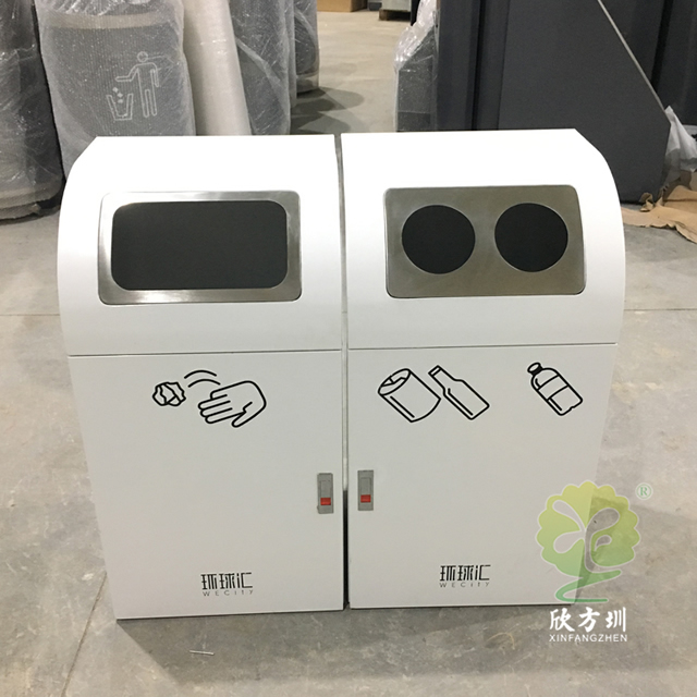 商場組合式冷軋鋼板分類垃圾桶是欣方圳設計生產的一款經典新款垃圾桶,這款垃圾桶雖然使用鋼板制作而成,但是外形采用了白色噴塑設計,使其看起來有一股自然簡潔氣質,特別適合各種購物商城、物業小區、寫字樓、別墅小區、學校廣場等場景使用。這款垃圾桶外表經過防腐工藝處理,防水防腐蝕、經久耐用、工藝精湛、物美價廉。如果你對這款垃圾桶感興趣,請直接聯系我們報價。