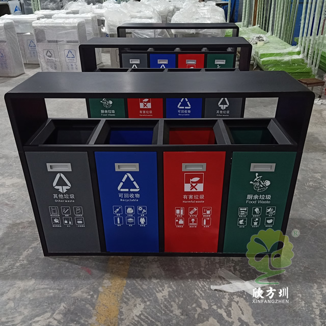 戶外干濕4分類鋼制垃圾箱是欣方圳設計生產的一款經典熱銷垃圾桶,這款垃圾桶雖然使用鋼板制作而成,但是外形采用了噴塑設計,使其看起來有一股自然古典氣質,特別適合各種歷史景區、戶外公園、別墅小區、學校廣場等場景使用。這款垃圾桶外表經過防腐工藝處理,防水防腐蝕、經久耐用、工藝精湛、物美價廉。如果你對這款垃圾桶感興趣,請直接聯系我們報價。