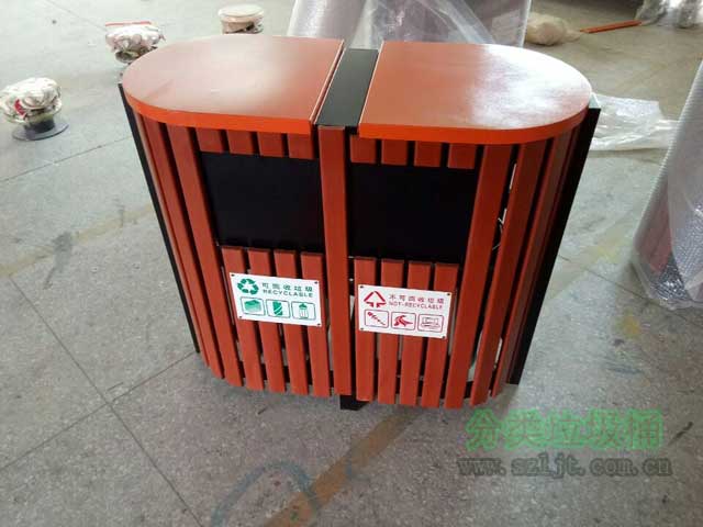 戶外精品鋼木分類垃圾桶長260mm,寬260mm,高900mm,桶身采用優(yōu)質(zhì)進(jìn)口防腐木、進(jìn)口山樟木或水曲柳制作,可抑制生物、微生物的寄生、繁殖與侵蝕,延長木材在戶外環(huán)境中的使用壽命。表面經(jīng)過除蟲,防蟻,防腐,烘干等專業(yè)處理后加工成型,經(jīng)久耐用,防腐美觀。桶蓋/內(nèi)膽采用FRP玻璃鋼材料制造,具有防腐、防生銹、易清潔等特點。底座采用玻璃鋼纖維制作,從根本上解決了防腐、防盜、生銹的問題,產(chǎn)品在戶外的使用壽命大大增強。此款垃圾桶無論是從外觀,性能還是環(huán)保方面來講都十分優(yōu)越,尤其適合擺放在花園,公園,小區(qū),學(xué)校,街道,游樂園等場所,備受客戶青睞。