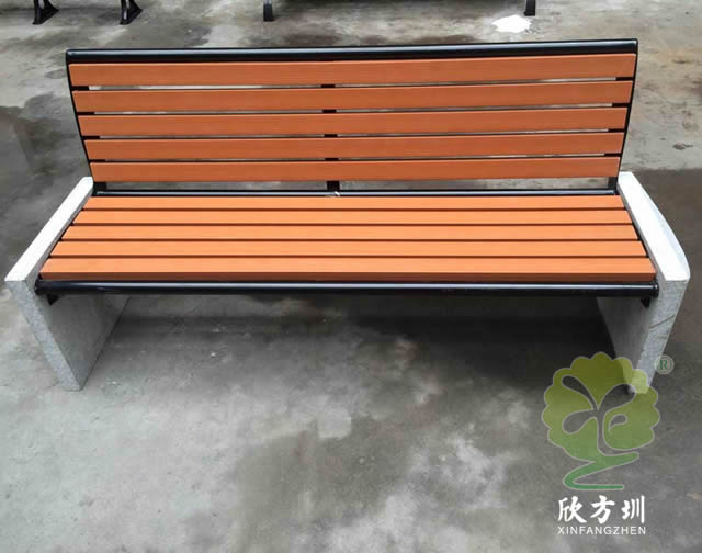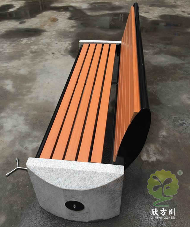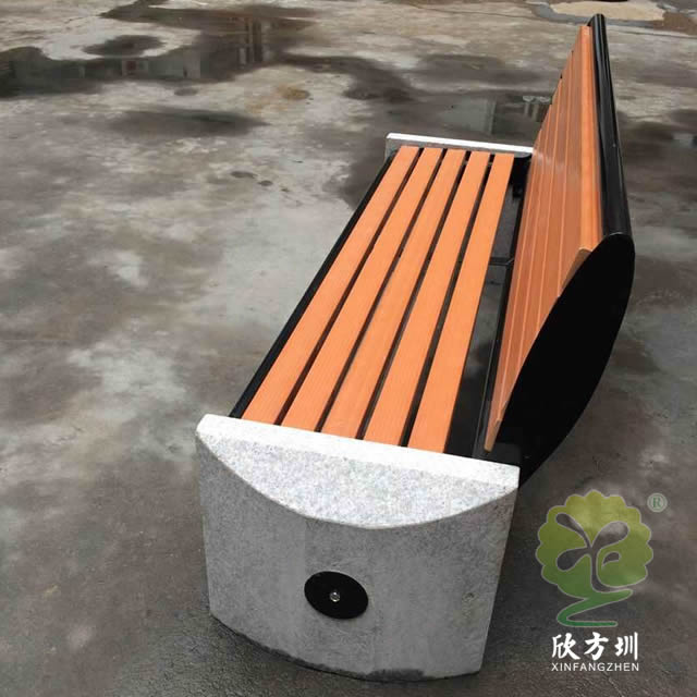 戶外公園帶靠背石板鋼木休閑椅